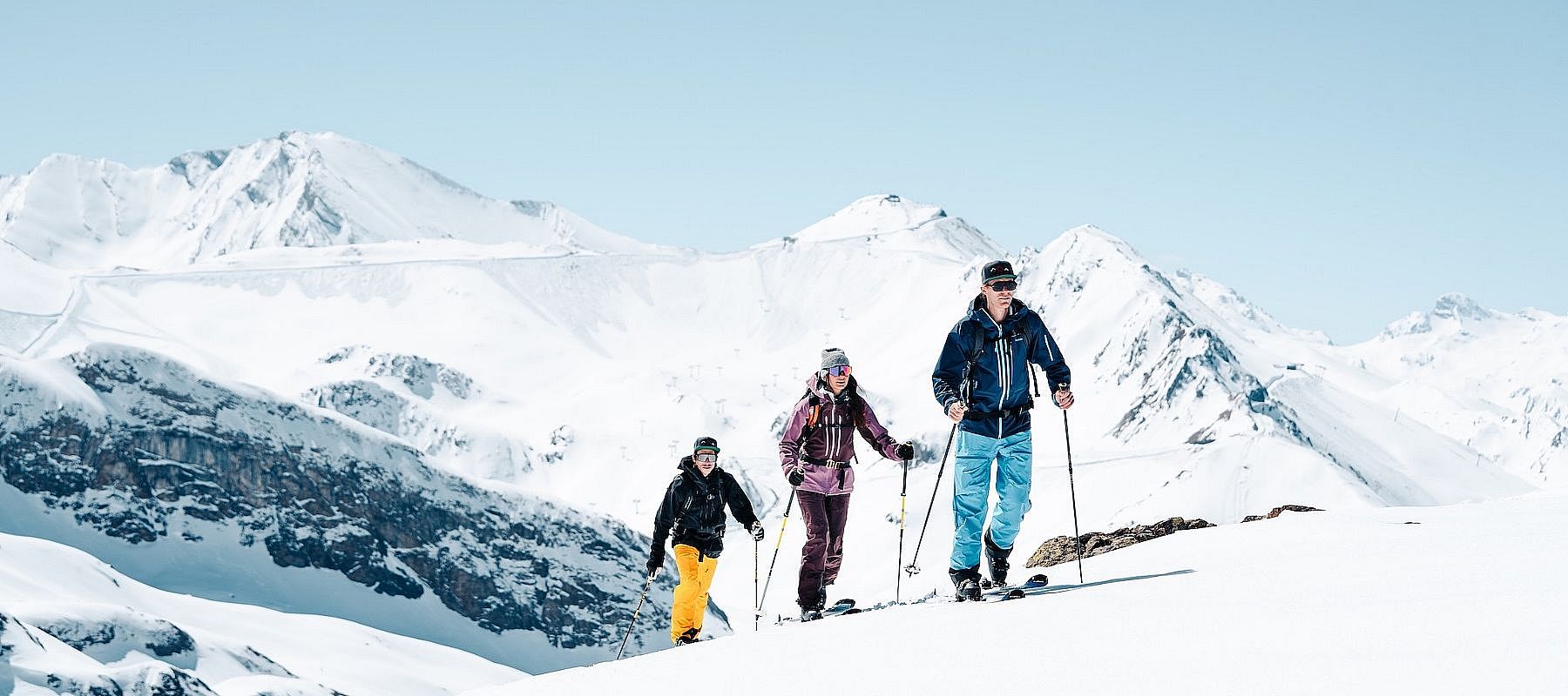 Schnallt's euch die Skier an – vom Pistenbully gezogen geht’s gleich hinauf aufs Zeinisjoch in Richtung des Stausees Kops auf knapp über 1.800 Meter. Nach einer variantenreichen Abfahrt durch den Wald gelangt's ihr ins vorarlbergische Montafon nach Partenen. Die Vermuntbahn bringt euch anschließend wieder hinauf auf 1.739 Meter Höhe. Ein Highlight der Safari ist das Tunneltaxi. Es bringt euch durch einen beeindruckenden Stollen im Berg auf die Bielerhöhe. Am Gipfel angekommen, heißt es genießen – den imposanten Ausblick auf die Silvretta mit ihren 3000ern! Durch das verträumte Vermuntal führt die Tour wieder zurück nach Galtür.